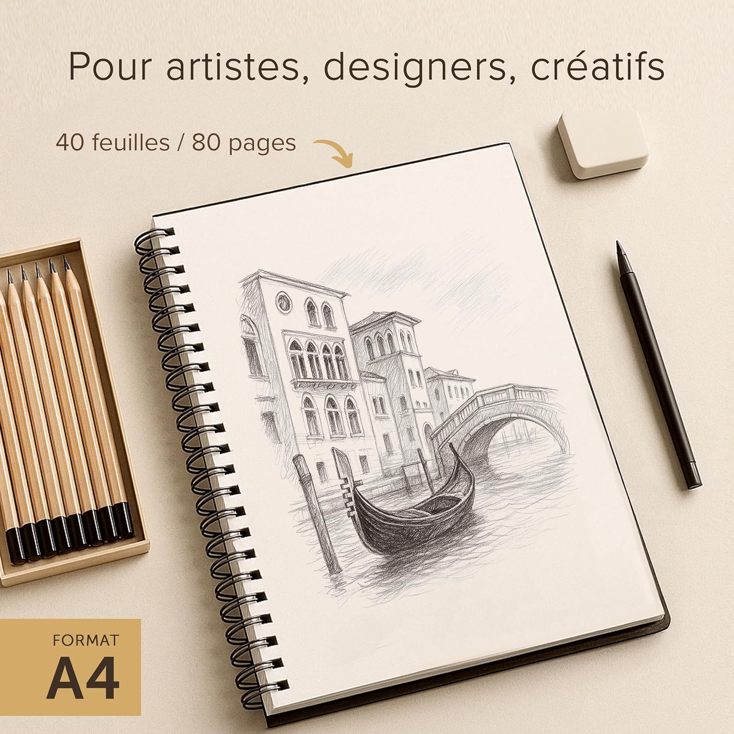 Carnet à dessin relié, A4 – Papier épais